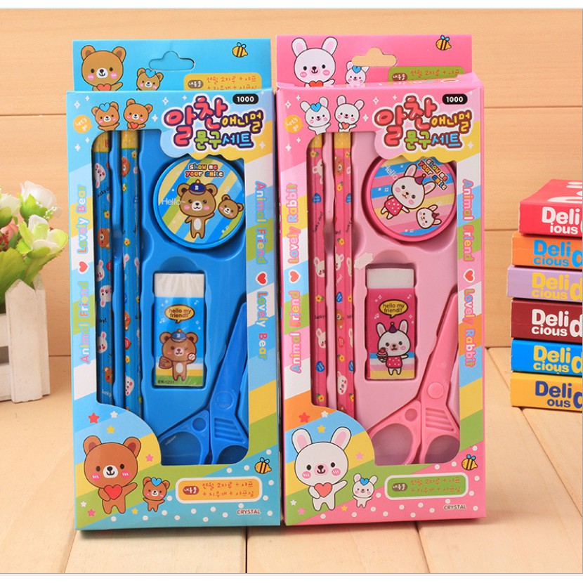 [Quà noel cho bé] Bộ dụng cụ học tập cho bé 5 món_ Đồ dụng học tập dễ thương ( loại to) free ship